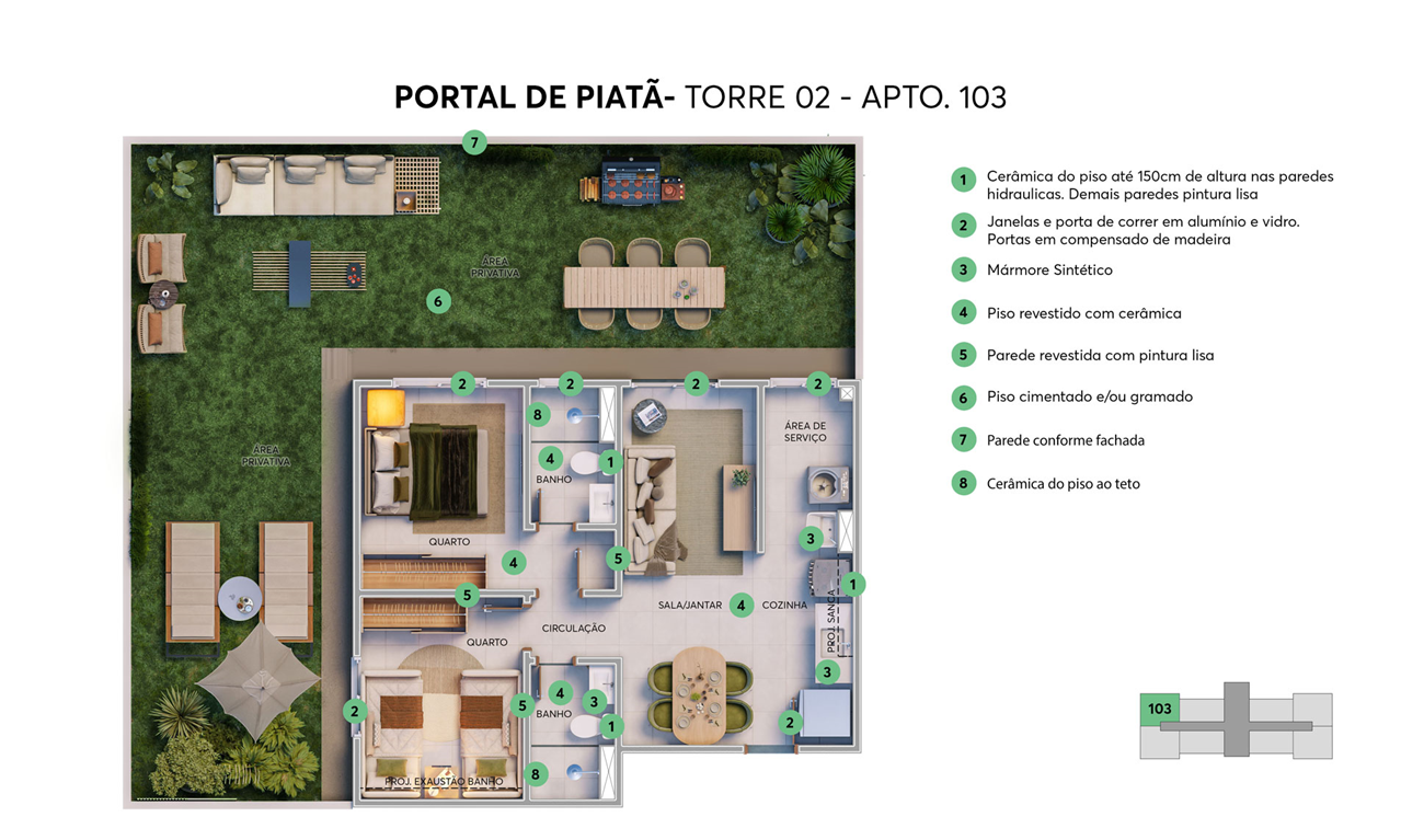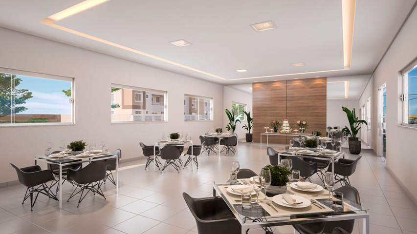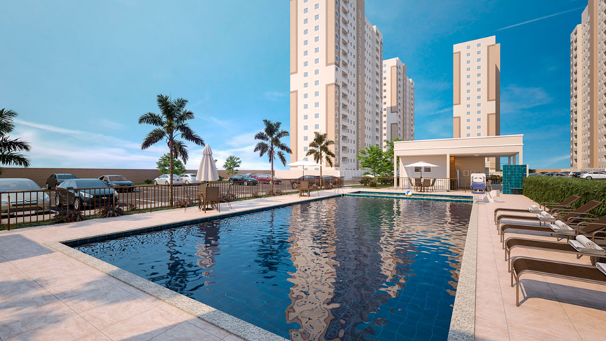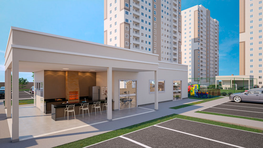Churrasqueira, Espaço Gourmet, Pet Place, Piscina Adulto, Piscina Infantil, Playground, Quadra Gramada, Salão de Festas.