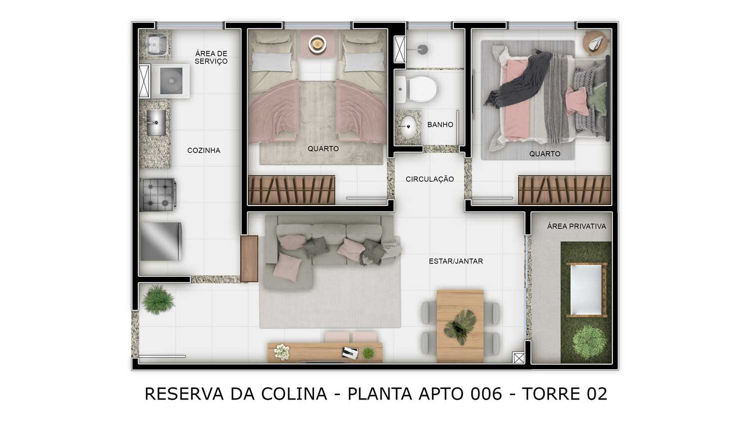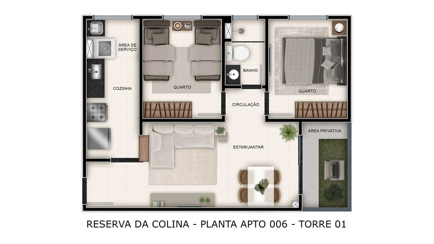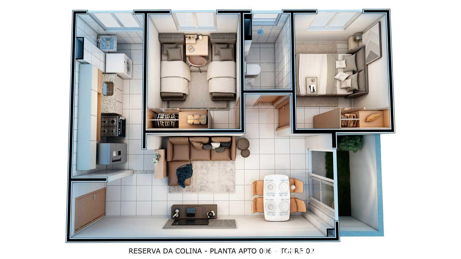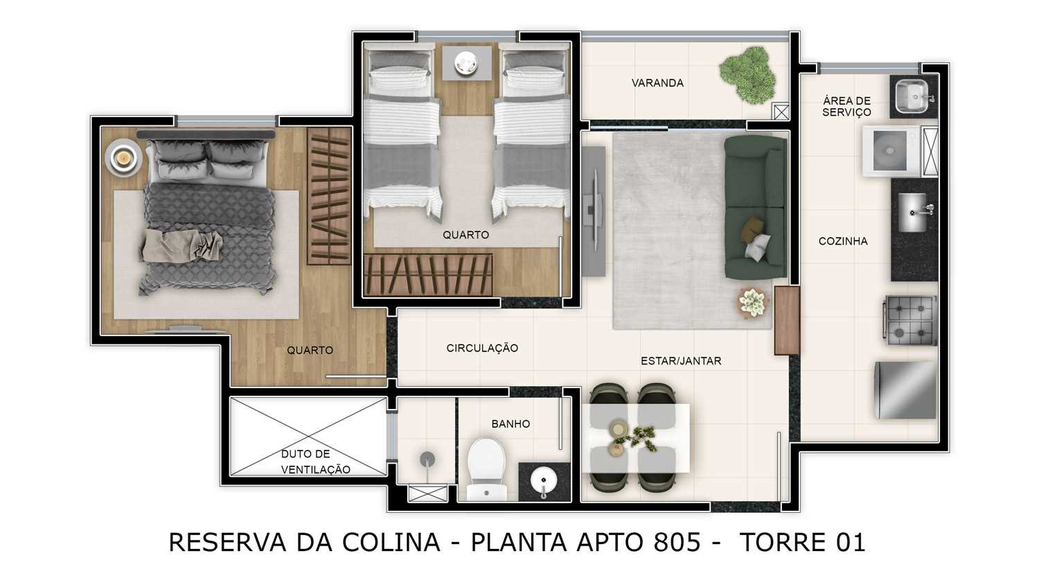2 Quartos: 44,01 ou 44,83 ou 44,86 ou 45,73m²*