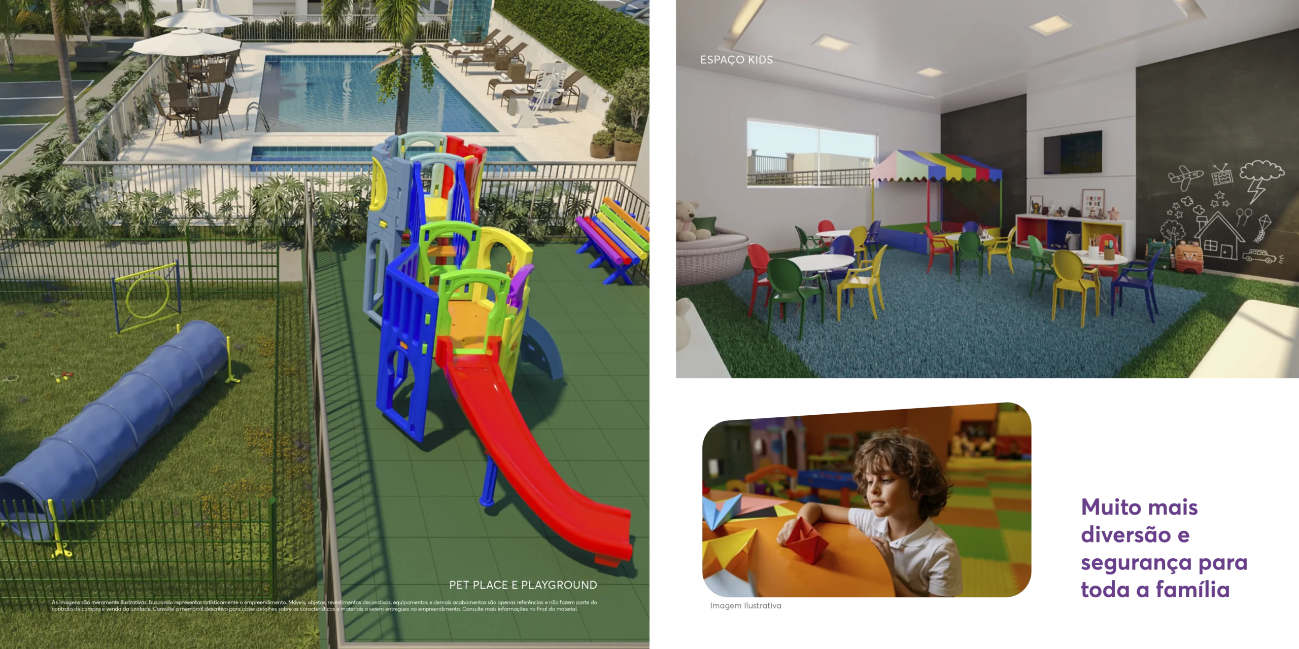 Espaço Gourmet, Espaço Kids, Pet Place, Piscina Adulto, Piscina Infantil, Playground, Salão de Festas com Copa.