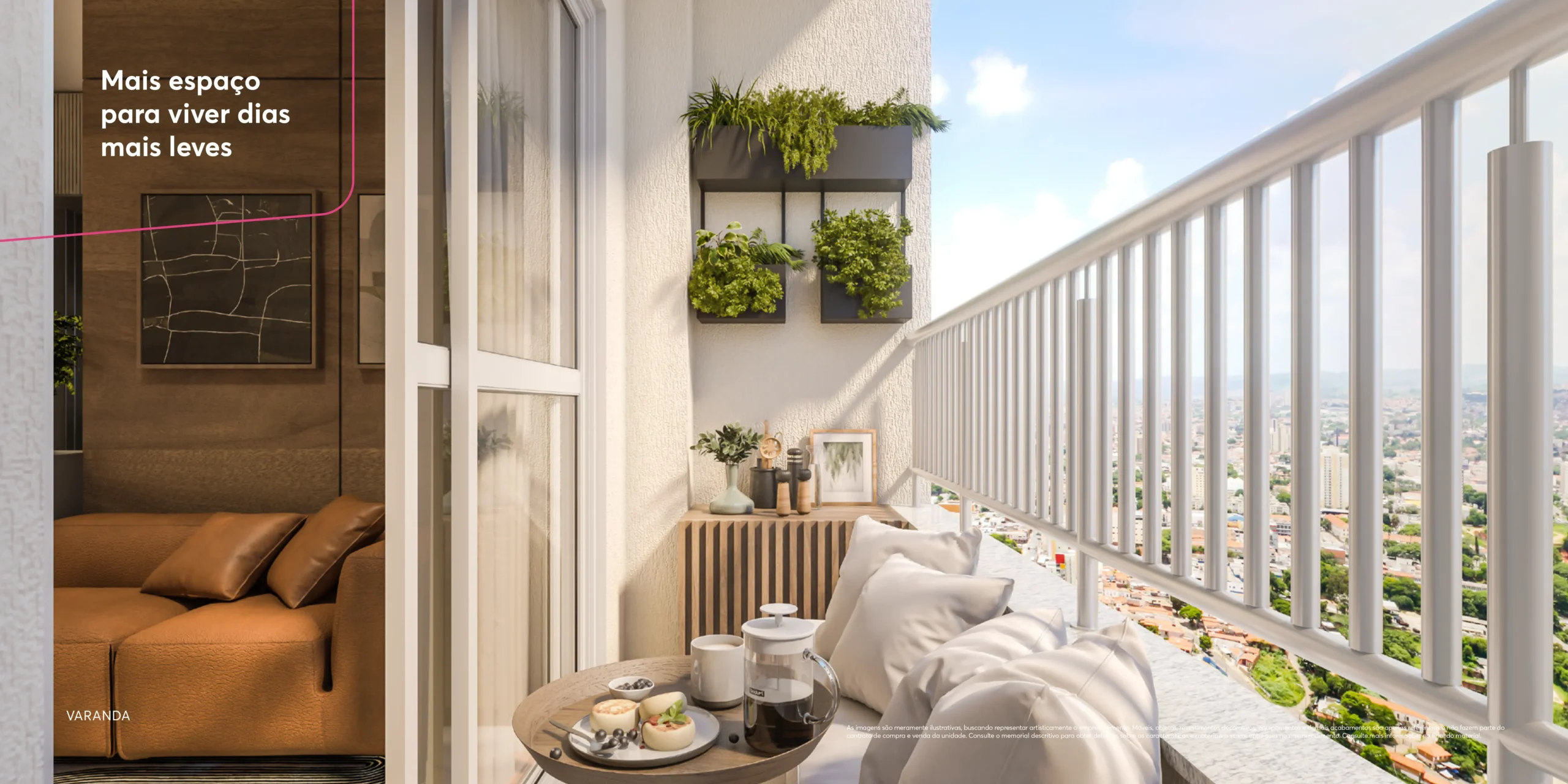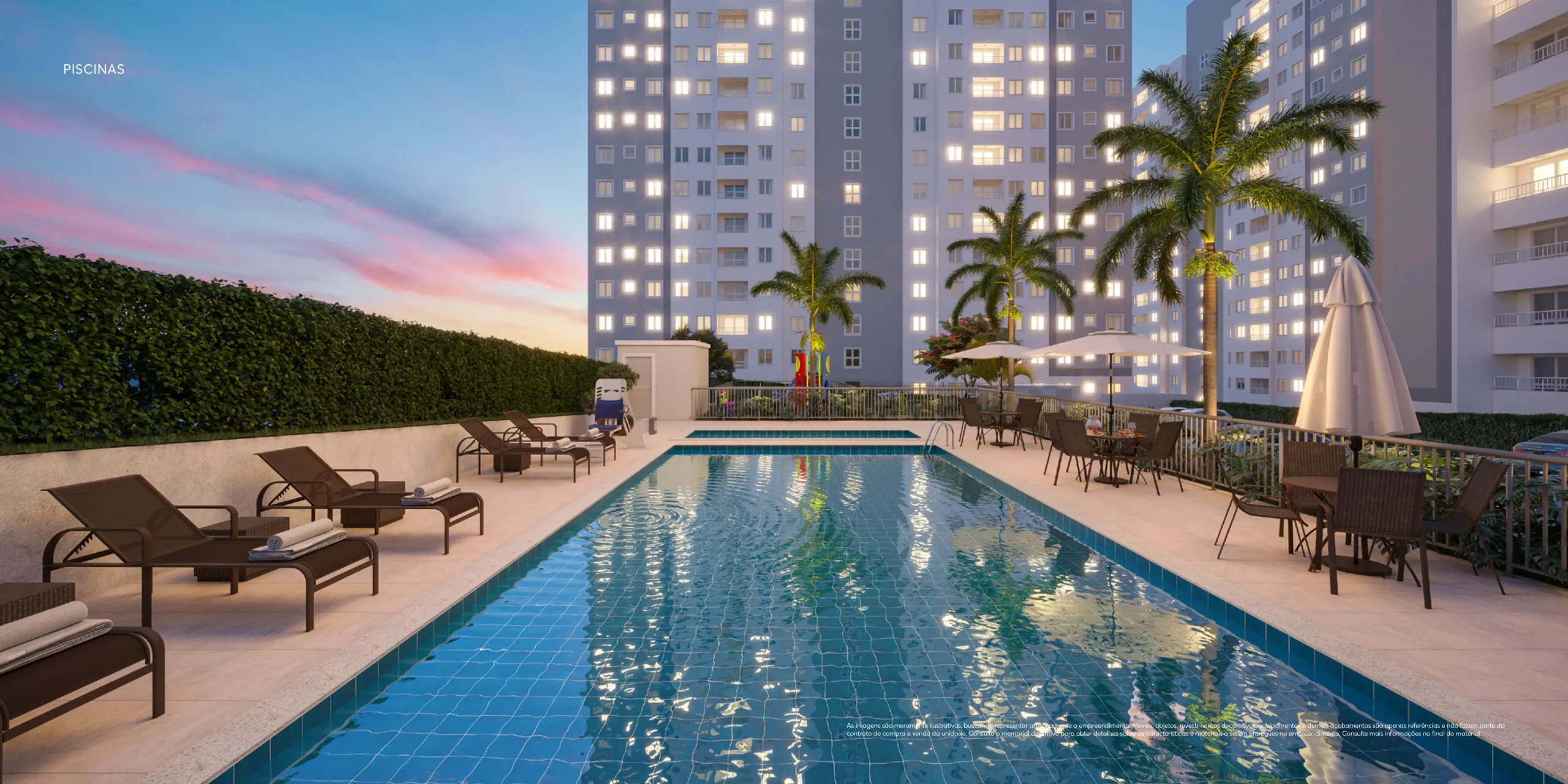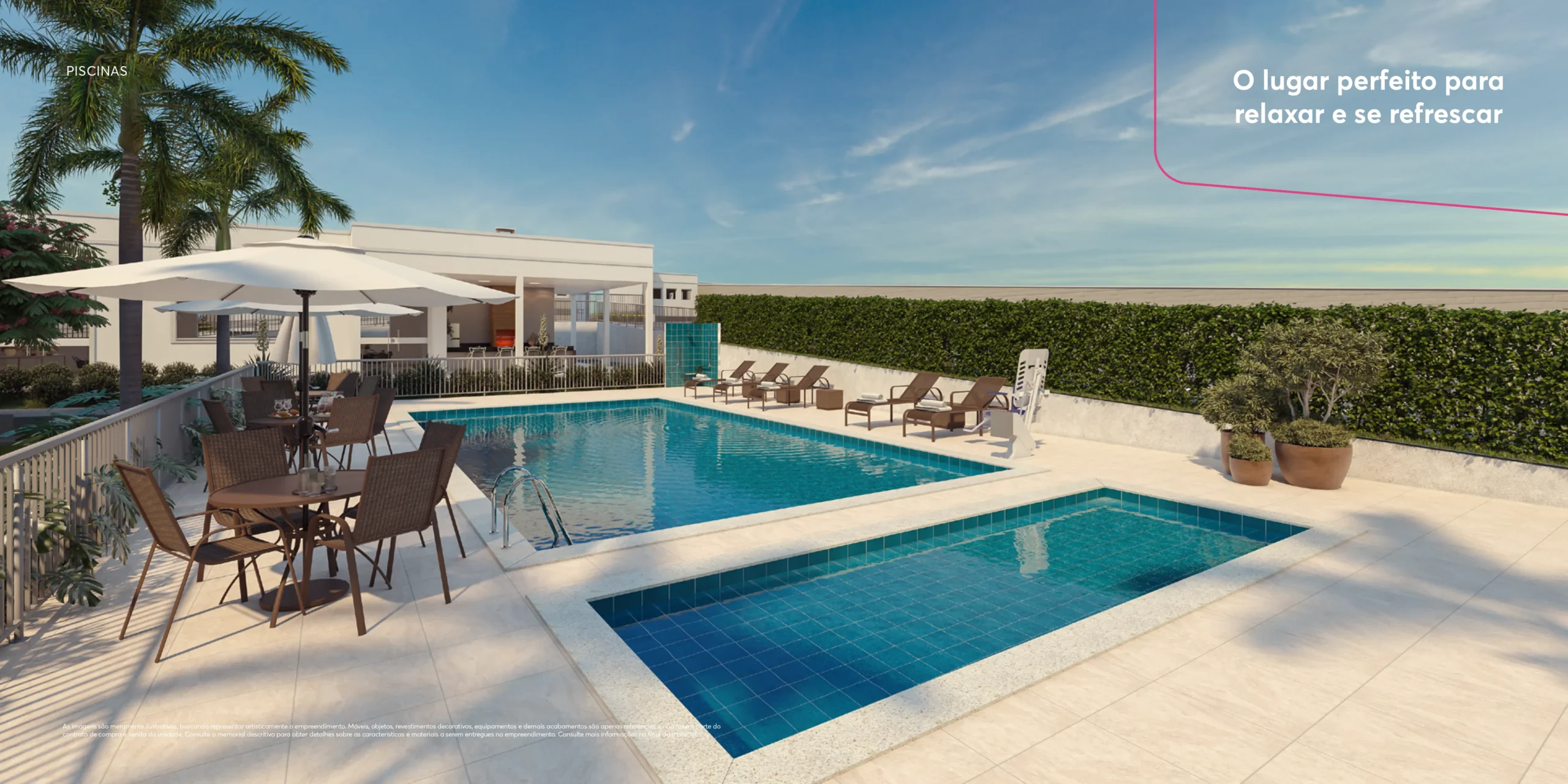 São quatro torres com elevadores e opções de varanda e área privativa. Além de uma completíssima área de lazer com piscinas, energia solar e outras tecnologias no condomínio, trazendo mais economia, conforto e sustentabilidade para o seu dia a dia.