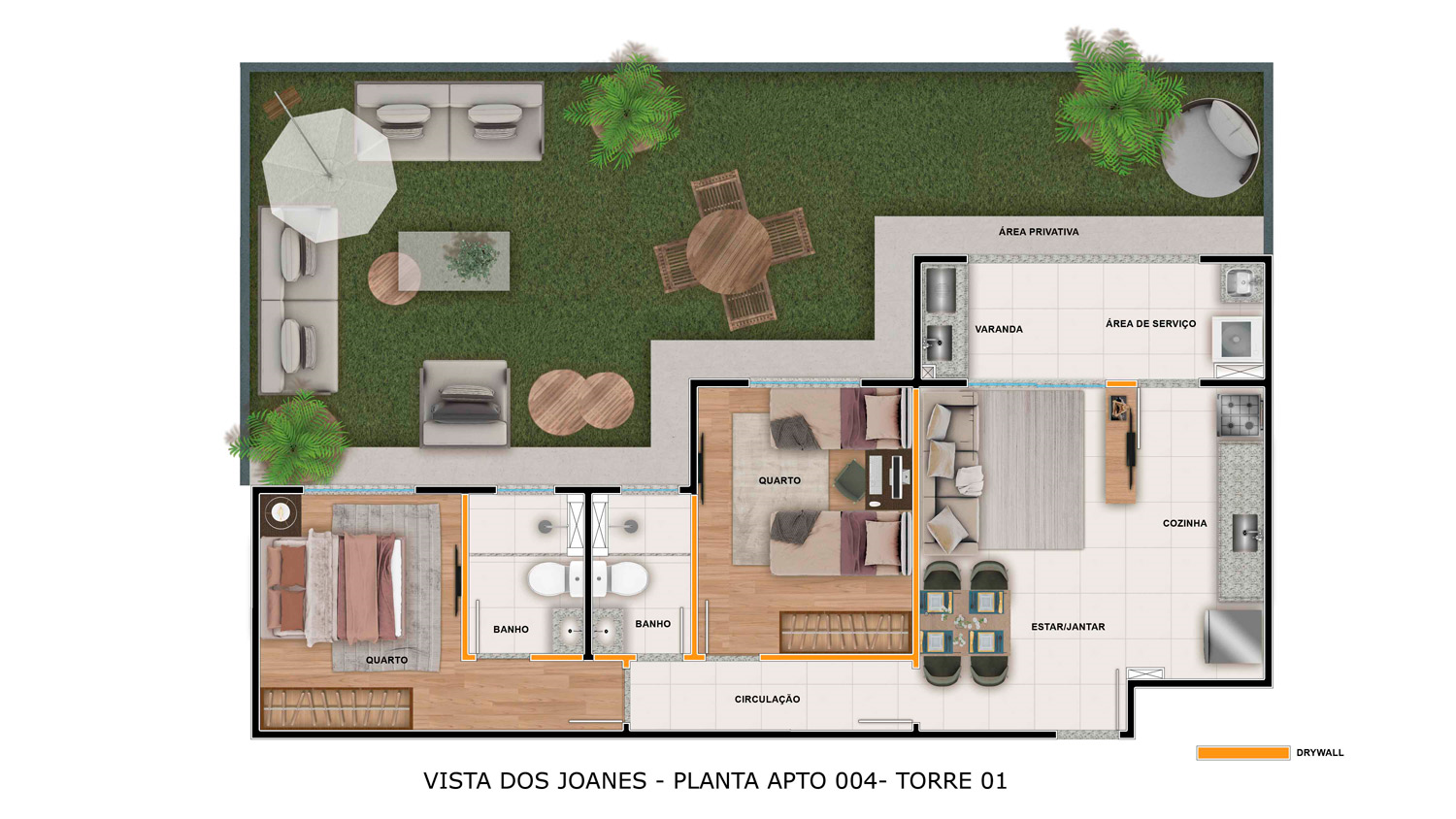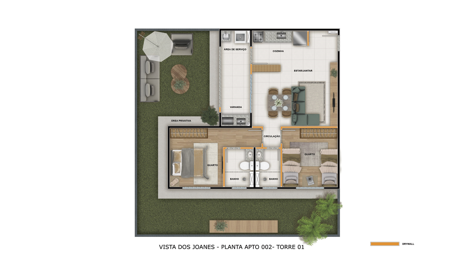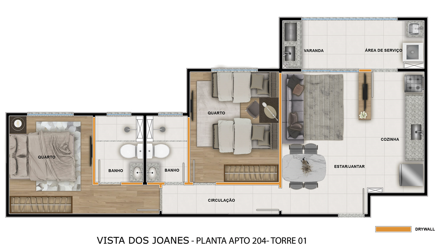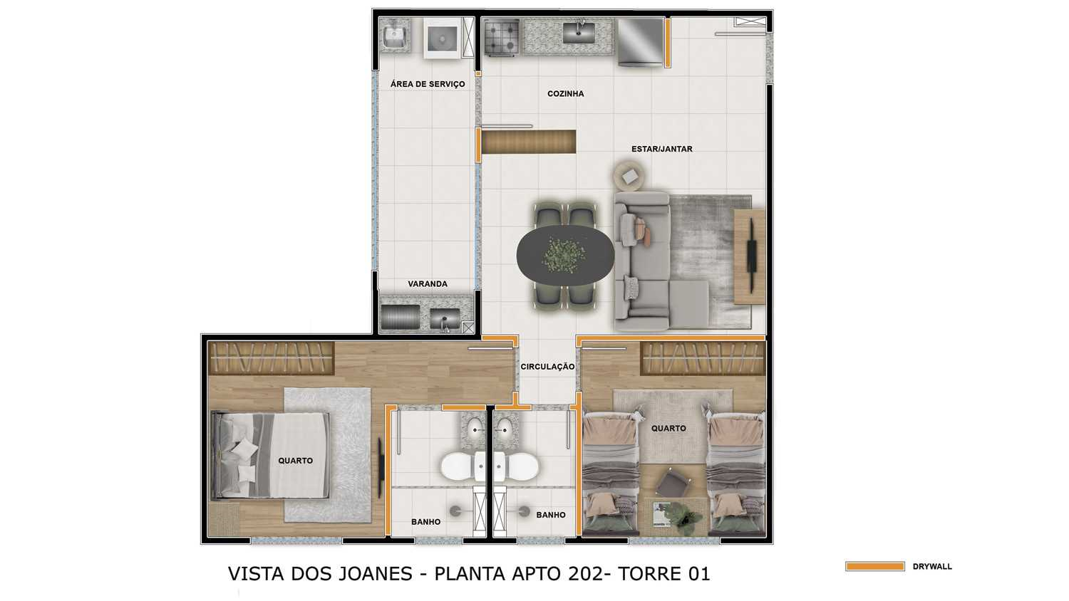 2 Dorm. com Suíte Área total: 63,27 ou 64,30*