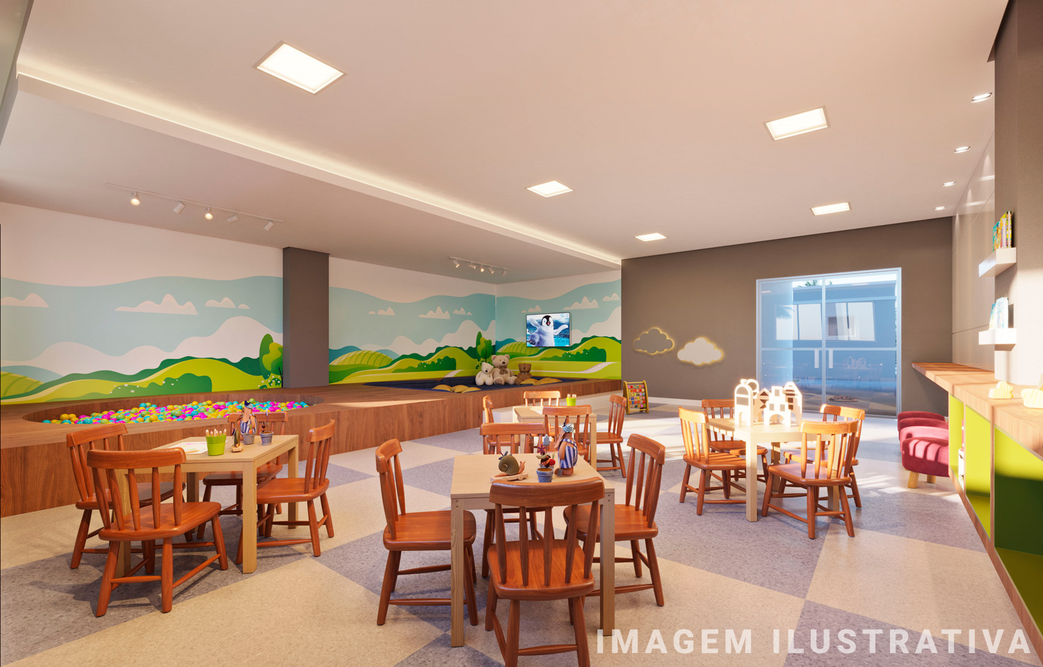 Área de lazer: Espaço Gourmet, Espaço Kids, Academia Coberta, Pet Place, Piscina Adulto, Piscina Infantil, Playground, Quadra Gramada, Salão de Festas com Copa